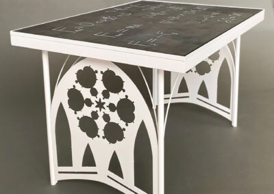 I source my hardwood from a local Amish lumber mill, Byler’s Kiln Drying. Salvaged materials, like the slate chalkboard in my Science Altar, are sourced from local salvage yards.