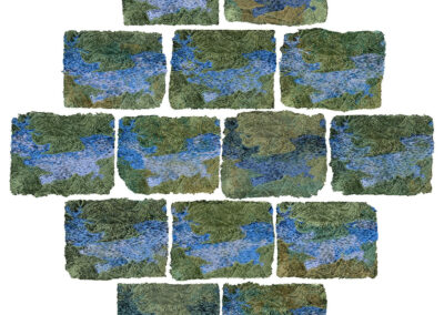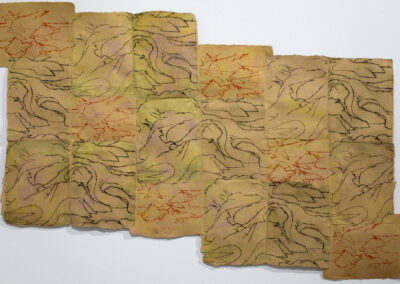 I work in the fine art craft mediums of printmaking and papermaking. Through sheet forming and cast paper I design and construct a variety of paper incorporated into artwork and the gift-giving performances including thic cotton rag sheets, flax, and thin mulberry sheets. I experiment with paper color, weight, and various natural fibers and explore how my handmade sheets receive printmaking methods. Intaglio printmaking is my specialty but I also use relief, serigraphy, lithography, collagraph, and monotype techniques to create my work. I draw landscapes and abstraction through pattern design, its systems structure my images, and I use multiples to lay out printed repeat patterns.