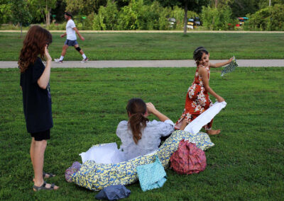 The Indigenous methodology of gift-giving is an old technology, a way of relating to one another and to the land in a holistic and balanced manner. Before taking anything, something should be offered, to honor our relationship with who we are taking from. By developing this technology and crediting its Indigenous practitioners, gift-giving has the potential to not only mend the land, but also end the violent conditions that so many people endure in the current system. Imagery in my work of mountains, waterways, dams, and flooded valleys refer to the altered landscape and constructs shaping society. Pattern represents the infinite; its repetition is the experience of place in cyclical time. Using wrapping paper to initiate the scenario of a gift-exchange, participants wrap objects that signify entities of Nature that we commune with daily in essential ways.
