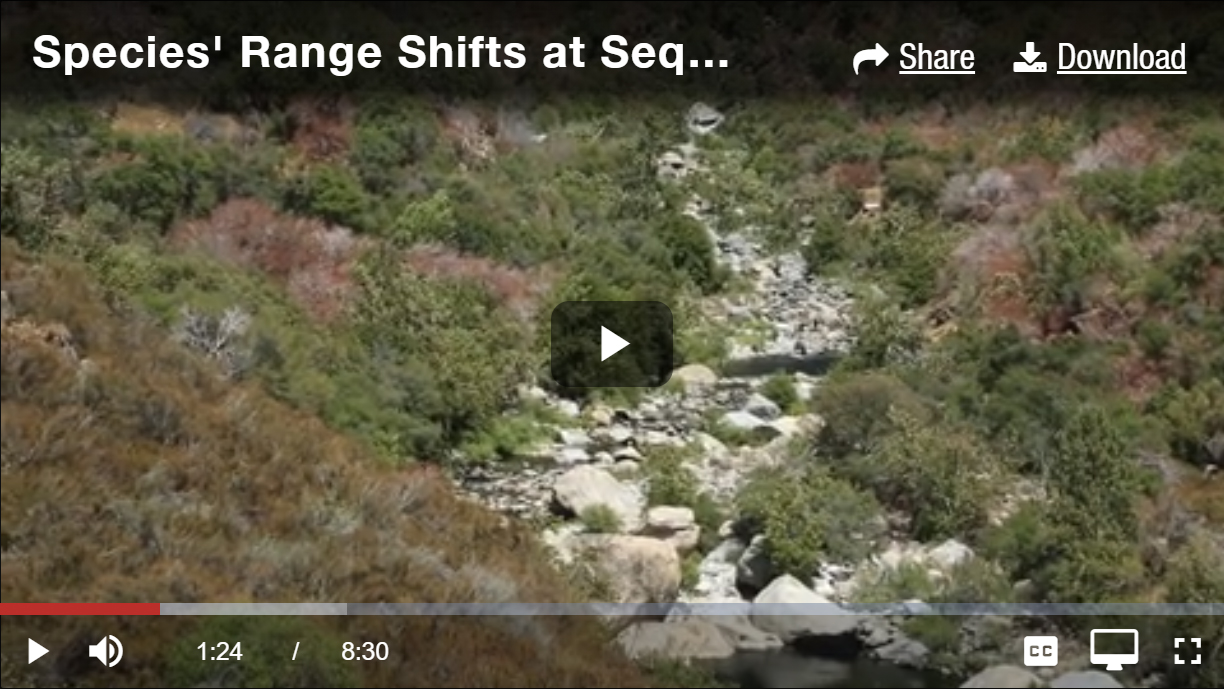 Species Loss, Precipitation and Fire in Sequoia National Park, a (9:13 min.) video, focuses on adaptation to climate change. Scientists explain how they document and analyze changes to the forest (such as warmer temperatures, reduced snow cover, longer and dryer fire seasons) to identify and prepare for upcoming management challenges.