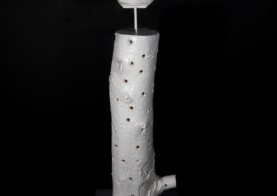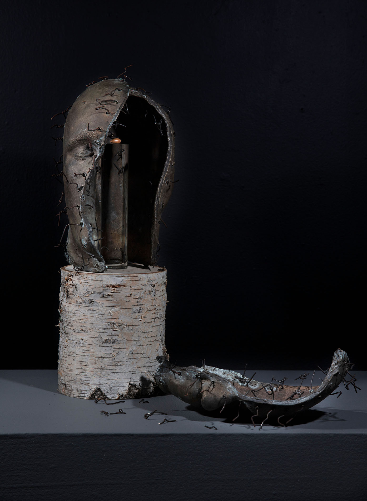 I use second hand and repurposed materials like metal, wood, plaster, wax and clay to create sculptural installations that depict the fragility of the natural world. I make work in hopes to provide proof that art and craftsmanship can serve as a tool to help fight for our planet.”